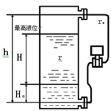 B、测量垂直管道时(见图39)正压室法兰安装在下面,负压室法兰安装在上面,不管变送器本体安装在什么位置,变送器始终有r。·H的液柱压力,这个压力必须用迁移的方法来进行平衡,变送器应有r。·H的正迁移量。
