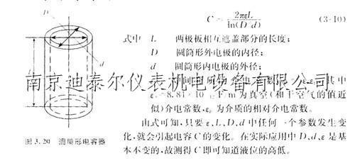 电容式物位计的电容检测元件是根据圆筒是电容器原理进行工作的.结构形式如图所示。电容器由两个相互绝缘的同轴同轴圆柱极板.即内电极和外电极组成,在两筒之间充以介电常数为£的电介质时,两圆筒间的电容量为: