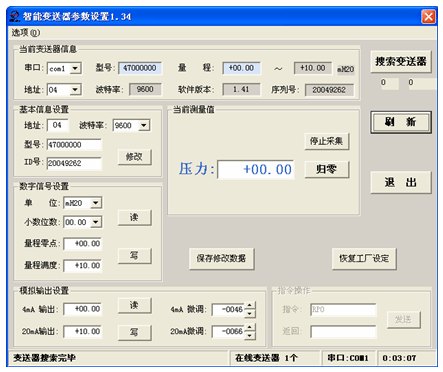 通过RS232/485转换模块,用于对RS485接口型变送器读取内部基本信息(包括液位量程和温度补偿范围、版本等),显示实际液位值、设置新零点、程控设置模拟输出、设置仪表地址等。